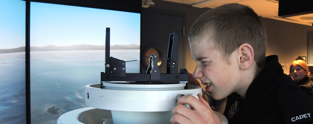 Feb 4, 2023 Ordinary Cadet Asher Bratseth looks through the Pelorus on a bridge simulator at HMCS Venture. Photos: Peter Mallett/Lookout
