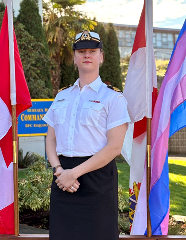 [caption id="attachment_34740" align="aligncenter" width="595"] Lieutenant de vaisseau Michele Newman[/caption] Peter Mallett, Rédacteur en chef — Le drapeau de la fierté transgenre a flotté au sommet des mâts de Naden, Work Point et Duntze Head lors de la cérémonie des couleurs le 31 mars. Des levées de drapeaux similaires ont également eu lieu pendant le long week-end de Pâques dans les bases militaires du Canada. C’était l’occasion pour les Forces armées canadiennes et les organisations consultatives de l’équipe de défense et de la fierté (DTPAO) de reconnaître officiellement la Journée internationale de la visibilité des transgenres. Cette journée célèbre la résilience et le courage des personnes transgenres qui sont capables d’être et de s’exprimer, tout en sensibilisant à la discrimination à laquelle elles sont confrontées au niveau national et mondial. Le lieutenant de vaisseau Michele Newman, officier du génie du quartier général du groupe d’entraînement naval, coprésident militaire de la DTPAO de la BFC Esquimalt, est l’un des militaires qui célèbrent avec fierté cette journée de reconnaissance. “Cette journée de reconnaissance est très importante parce qu’elle représente la capacité des personnes transgenres à être visibles, non seulement dans les Forces armées canadiennes (FAC), mais partout où elles sont reconnues”, a déclaré le lieutenant-colonel Newman. “Les personnes transgenres ont été minimisées et discriminées pendant si longtemps que cela leur a été gravement préjudiciable. Le fait de pouvoir voir d’autres personnes transgenres, ainsi que la reconnaissance et le soutien qu’elles reçoivent, aident à combattre cette stigmatisation. L’année dernière, alors qu’elle était officier mécanicien du département de génie des systèmes marins à bord du NCSM Calgary, le lieutenant de vaisseau Newman s’est enfin sentie prête et suffisamment en sécurité pour révéler à son département et à ses camarades de bord qu’elle était une femme transgenre. “À ma grande joie, ce fut un moment d’acceptation pour moi, de reconnaissance et de soutien de la part de mes camarades de bord, et c’était un sentiment formidable”, a déclaré le lieutenant de vaisseau Newman. “J’ai...