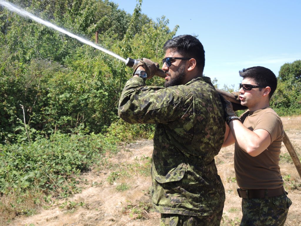 Soldiers prepared to deploy as part of Operation Lentus to help combat several wildfires burning in the Central Interior region of British Columbia. A two-day S-100 Firefighting Course at CFB Esquimalt’s Urban Search and Rescue Training Centre on July 20 and 21 involved approximately 20 Army Reservists representing various branches of the 39 Canadian Brigade Group.