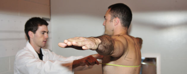 OS Scott Hickey, marine systems engineer student from Fleet School volunteered to take part in the 2012 Canadian Forces Anthropometric Survey.
