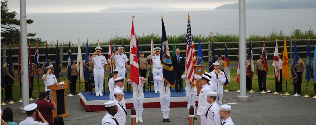 [caption id="attachment_1888" align="alignnone" width="300"] Cdr Bradley Peats of NOTC accepts a donation of 50 hand made quilts from Marilyn Fuller, the Vancouver Island Representative for Quilts of Valour.[/caption] History and valour melded last Saturday at Fort Rodd Hill during Fab Fort, a celebration of Canada’s military. Amidst the howitzers, medieval re-enactors, vintage military vehicles and thousands of visitors, two dozen local quilters delivered 50 hand-made quilts for injured veterans and service members. Accepting the quilts on behalf of the Canadian Forces was Cdr Bradley Peats of the Naval Officer Training Centre. “The CF is like a family. That family isn’t just its active service members,” said Cdr Peats. “It’s our families, civilian organizations, and grassroots organization like Quilts of Valour that do such remarkable things for service men and women.” The women of Quilts of Valour have been stitching these hand-made coverlets since 2006, when the organization was founded by Lezley Zwaal of Edmonton, Alberta. Since then, chapters have sprung up all over Canada and delivered more than 1,500 quilts. The Vancouver Island chapter is headed by Marilyn Fuller, who was on hand to make the Aug. 19 presentation. “We wouldn’t have what we have if the military didn’t do what they do,” said Fuller, who’s had the opportunity to personally deliver quilts to a number of veterans. She says the meetings often ended in tears of happiness. “They just didn’t understand that so many people are appreciative of what they do.” The quilts are created from donated fabric and materials, including two huge boxes of scrap fabric given to Quilts of Valour by Parks Canada. The scrap fabric began as 19th century-style clothing for historic displays and will find new life warming and comforting injured veterans. “Quilts of Valour is very close to what we do at Fort Rodd...